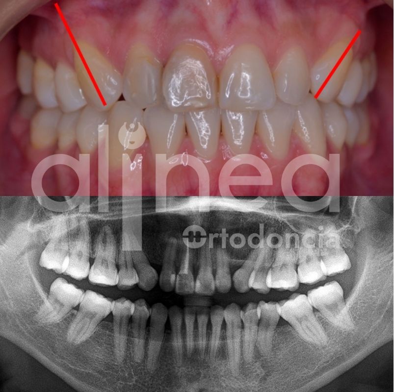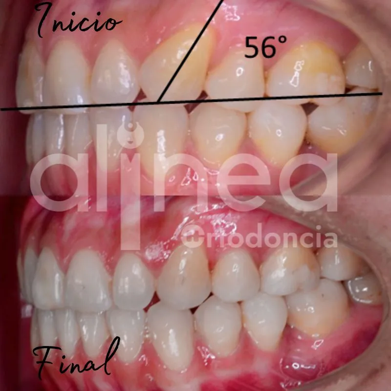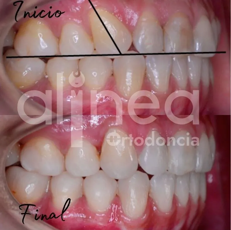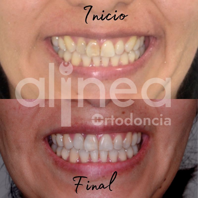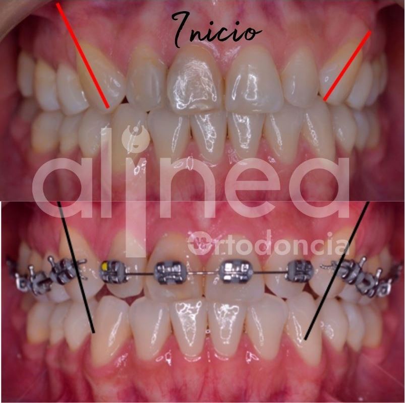 Les presento el caso de una paciente que llevo brackets anteriormente pero no estaba satisfecha con los resultados, sentía que los dientes no estaban bien alineados. Al evaluarla vimos que los caninos no tenían una adecuada angulación, lo que hacía que estéticamente no se vea bien.